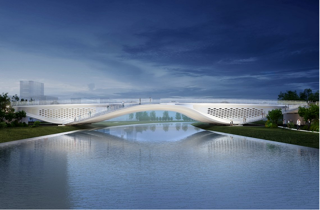 济南新旧动能转换先行区横二路大寺河桥梁段由世界著名桥梁设计师Marc MIMRAM先生主设计,桥梁工程结构为三跨梁拱组合钢结构,全长418米,工程造价1.4亿元,桥梁段长150.16米,采用钢结构梁拱组合体系一跨跨越大寺河,钢结构总钢材用量约4197吨。项目融合泉城文化与太极元素,以“泉与太极”为设计理念,兼具功能性与艺术性。作为先行区核心景观地标,桥梁的建成拓展了城市发展空间,推动济南从“大明湖时代”迈向“黄河时代”,为起步区高质量发展注入强劲动能。