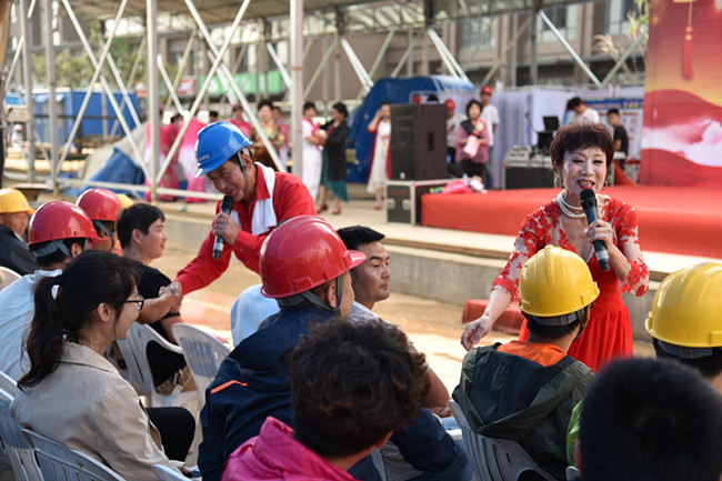 “安全月”“端午节”“农民工兄弟”是这次演出的三个关键词。公益艺术团的艺术家们来到工地现场慰问演出,向农民工兄弟表达敬意,为工地现场百余名农民工兄弟们呈现了一场高质量、高水准、精彩纷呈的文艺演出,表演形式丰富多样,演出内容贴近生活、生动感人,现场气氛高涨、反响热烈。艺术家们还为此次活动编排一首原创作品《叫一声农民工,我的好兄弟》,动情的演绎,温馨的场下握手互动,赢得了农民工兄弟们一阵又一阵热烈的掌声。演出节目中穿插由分公司设计组织的与施工队伍互动环节——你说我猜,把平日工作中涉及的安全用语、安全知识、防患措施等纳入提示词中,在娱乐互动的同时,使安全观念和意识深入人心、牢记在心。