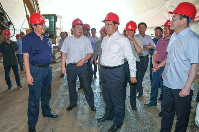 5月31日上午,省委常委、市委书记王忠林调研集团承建的车脚山隧道工程建设情况。市委常委、秘书长蒋晓光,市交通委主任贾玉良、副主任张宝文,市发改委副主任姬锋,集团党委副书记、总经理牟晓岩,副总经理吕守明等参加活动。