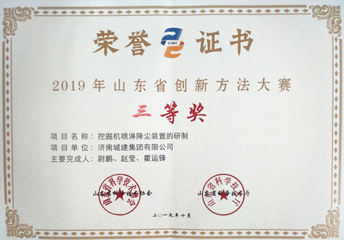 集团《挖掘机喷淋降尘装置的研制》荣获“2019年度山东省创新方法大赛三等奖”