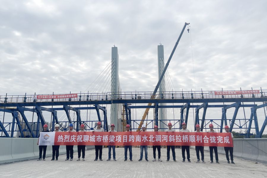 集团聊城东昌府区西关街桥涵项目斜拉桥主跨顺利合龙