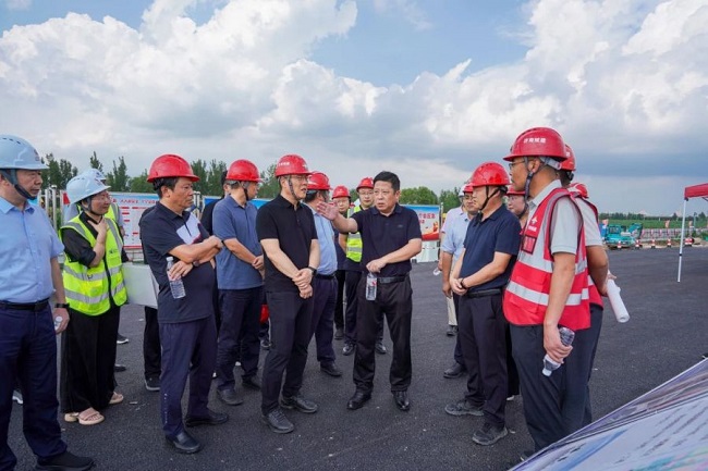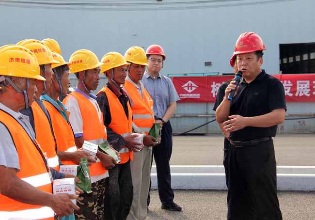 杨峰一行先后前往集团黄河大道二期工程、齐鲁黄河大桥项目施工现场,详细了解工程施工进度、工程质量、安全生产、文明施工等工作,并与集团一线职工沟通交流,感谢他们长期以来为项目建设及企业发展所作的贡献,为一线建设者送上防暑降温用品。