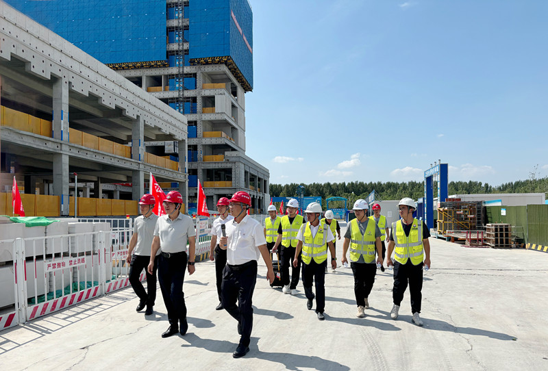 在施工现场,牟晓岩实地察看了工程建设进度、施工质量管理、安全文明施工和现场标准化应用等建设情况,深入了解工程推进情况和施工重点难点问题,对项目建设成果和项目全体建设者不怕困难、团结奋进的工作作风给予充分肯定。他指出,遥墙机场配套项目二标段是济南遥墙机场二期改扩建工程建设中的重要组成部分,建成后将极大地提高济南遥墙机场综合服务能力和运营效率,对促进区域经济发展、提升城市形象具有重要意义。目前,正值夏季高温时段,项目部要切实做好防暑降温工作,合理安排作业时间,保障工人身体健康,进一步加强安全教育,提高全体建设者安全意识,确保项目安全生产形势持续稳定。项目全体建设者要继续保持高昂的斗志和严谨的态度,科学部署、超前谋划,加强各工序安全、质量和进度管理,全面实现项目精细化管控,以超常决心、超常举措、超常力度抢抓施工黄金期,为项目建设提速创效创造良好条件。