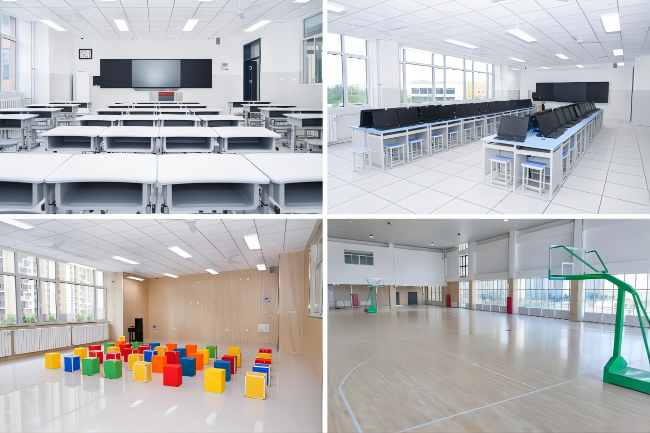 华山片区72班九年一贯制学校项目位于济南市华山片区西侧,总建筑面积约为4.35万平方米,总投资达2.7亿元。该项目是济南市区域性重点民生建设工程及市级教育优化升级的关键工程,围绕智慧化、绿色化、均衡化、双向化,采用创新型折线形布局和双廊式布局,极大地丰富了校园的空间形态与功能布局,为师生们打造独特而富有活力的“双首层”活动空间,全力打造集现代化、功能性与绿色生态理念于一体的教育新地标。