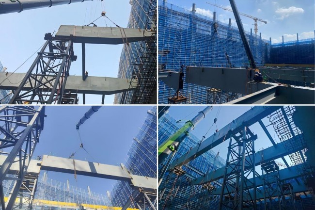 三层大跨梁吊装完成后,项目部将全面推进三层和四层局部钢结构平台、钢结构屋盖等后续钢结构施工。起步区游泳馆项目团队将持续保持高昂斗志,锚定工期目标紧抓实干,以优质履约打造标杆工程,为济南新旧动能转换起步区建设注入强劲动能。