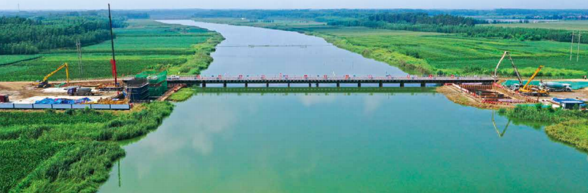 集团承建的标段全长 19 公里,包含路基、桥涵等工程,横跨徒骇河、赵牛新河、引黄干渠等河道以及青银高速、邯济铁路等主要道路、铁路。其中特大桥 1 座,大桥 1 座、中桥 4 座、通道桥 18 座;邯济铁路公铁立交 1 座、分离式立交 4 座、互通立交 2 处。工程战线长,征地拆迁任务重,工作头绪多、协调面广。