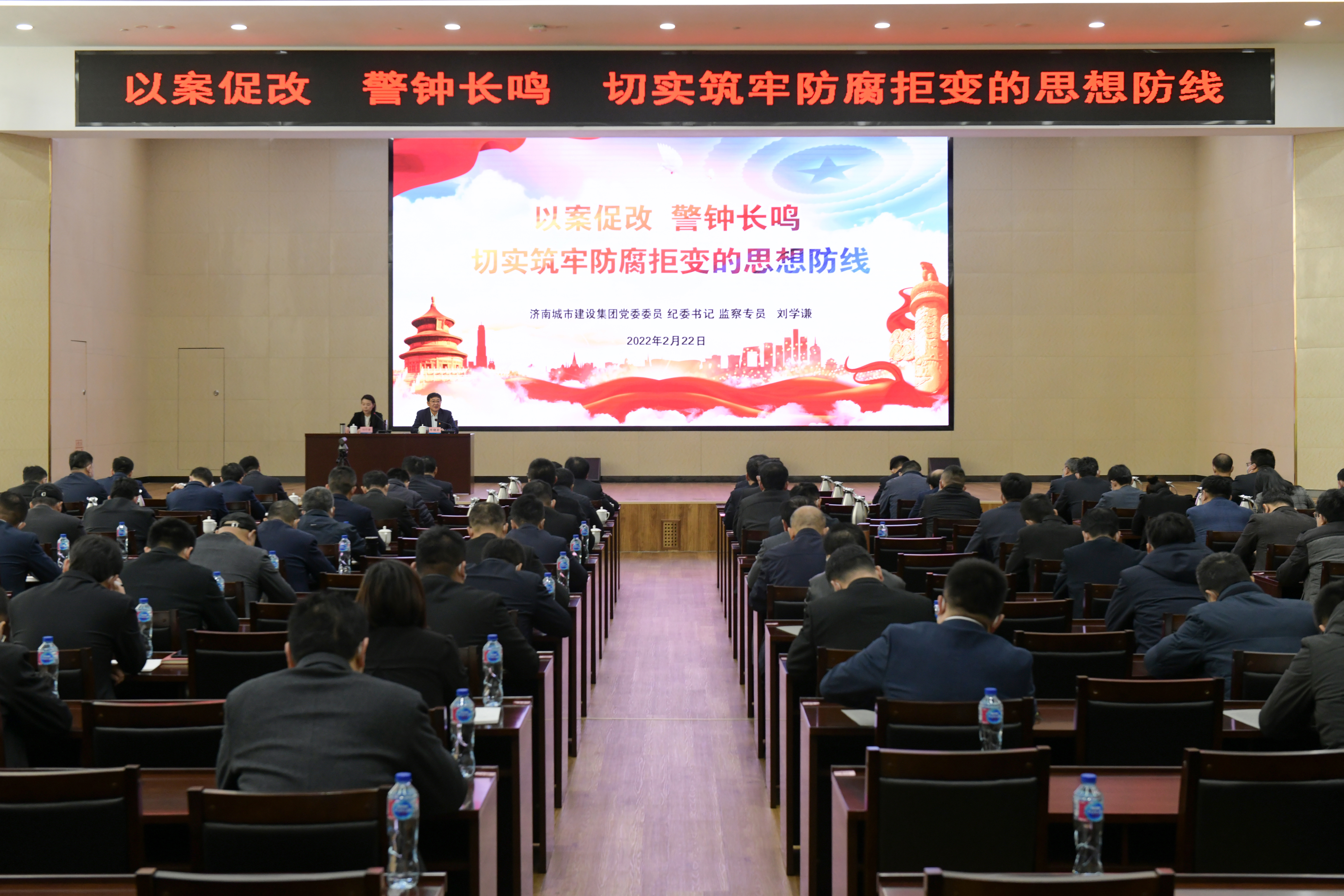 2月22日上午,建设集团党委委员、纪委书记、监察专员刘学谦到集团讲授党风廉政教育专题党课。集团领导班子成员、全体中层干部以及集团部室、各分(子)公司党员干部职工代表共计240余人现场听课。各分(子)公司、项目部通过视频会议同步上课。集团党委书记、董事长、总经理牟晓岩主持党课。